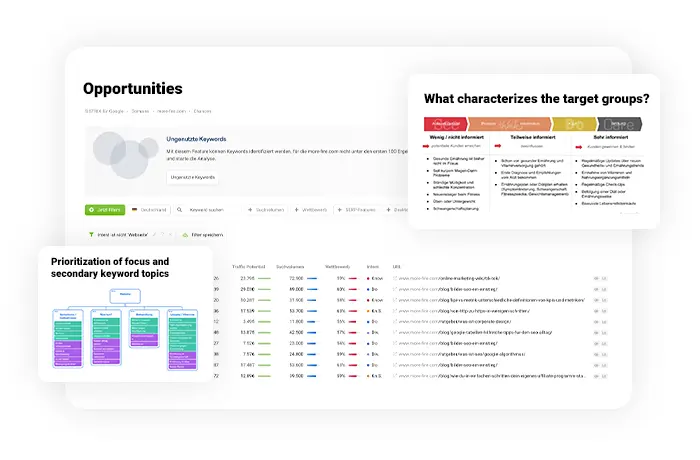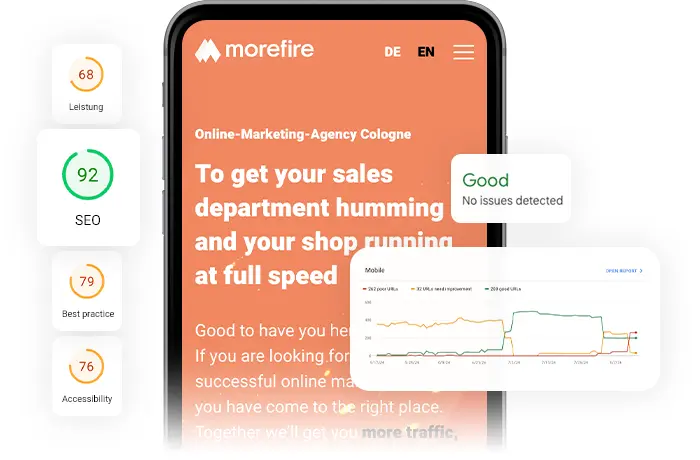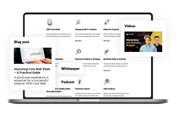 With morefire, you’re not just working with a strong SEO team, but with a comprehensive online marketing agency. This means that we never view SEO in isolation, but always in conjunction with content, UX, SEA, data, and performance. This results in strategies that not only improve rankings, but also increase conversions and drive your business forward in the long term.