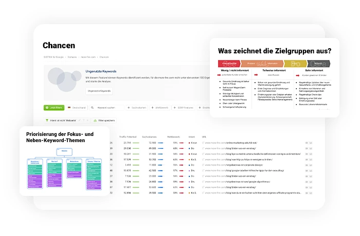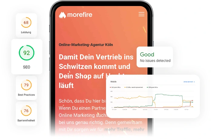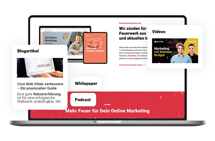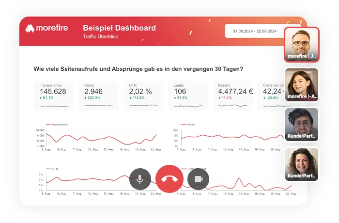 Mit morefire arbeitest Du nicht nur mit einem starken SEO-Team zusammen, sondern mit einer ganzheitlichen Online-Marketing-Agentur. Das bedeutet: Wir betrachten SEO nie isoliert, sondern immer im Zusammenspiel mit Content, UX, SEA, Data und Performance. So entstehen Strategien, die nicht nur Rankings verbessern, sondern auch Conversions steigern und Dein Business nachhaltig voranbringen.
